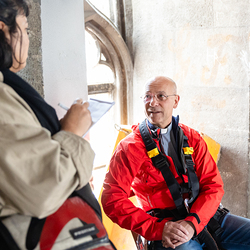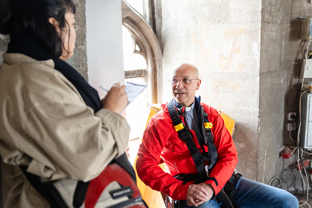 Im Vorfeld des Gottesdienstes bestieg Maturant Felix, der Gewinner des Preisausschreibens, mit Dompfarrer Toni Faber den 137 Meter hohen Südturm des Stephansdoms – ein Symbol für die Matura, die letzten Meter der Schulzeit. Wir haben die beiden mit der Kamera begleitet.